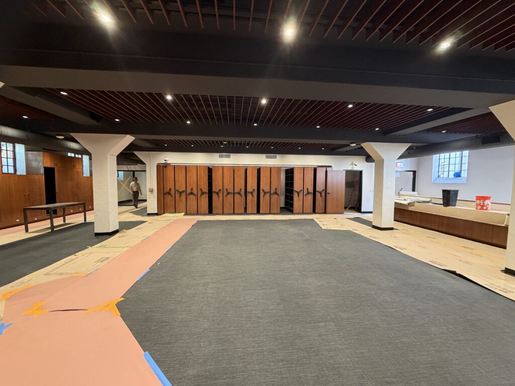 When construction began in early 2025, the usual obstacles of renovating a hundred‑year‑old building immediately showed. But because of you, our generous donors, we were able to deal with each contingency with clarity and deliberateness. From floods to uneven subfloors, and internet connectivity issues that affected AV early on, the construction team helped us beat back each challenge and stay the course for continued activity in our music programs’ new home. We had to dig up the entire area around the Queen’s Courtyard, but nothing stopped the team from accomplishing this goal together.